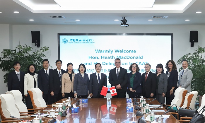 ?????? 10月29日,中國農業科學院院長黃三文會見了來訪的加拿大農業與農業食品部部長麥海思一行,雙方就進一步加強中加農業科技合作...